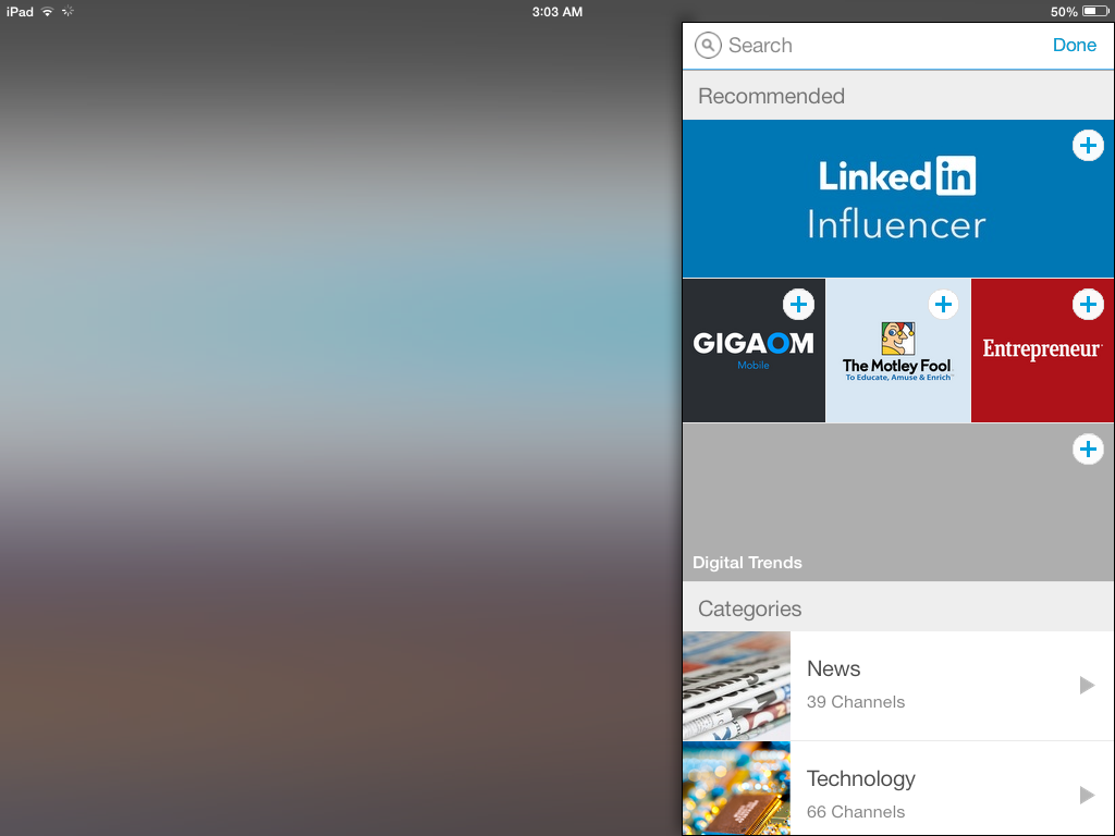 The app itself has a very aesthetically pleasing design. Although it provides countless choices for content, it remains simple to navigate. Swiping right lets the user quickly scroll through from one story to the next. Users can create lists to stay organized and divide topics easily into meaningful sections. The app also has a search feature that can be used to find a specific source, topic or article. The results are combined from Google, YouTube, Facebook and Tumblr, which eventually lead to the perfect source of information.